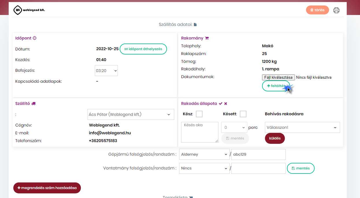 A szállítóknak és az adminisztrátoroknak lehetőségük van dokumentumok feltöltésére minden adatlapnál PDF, Excel vagy JPG formátumban.
